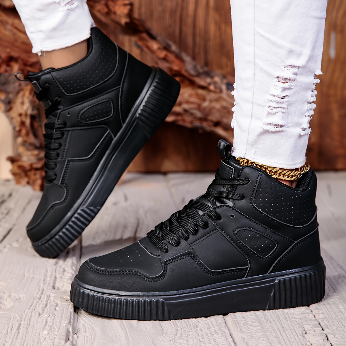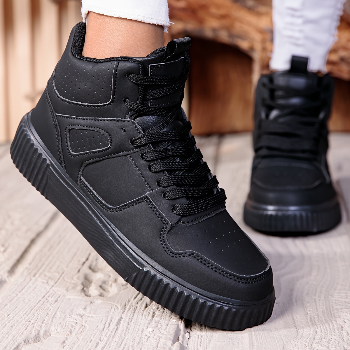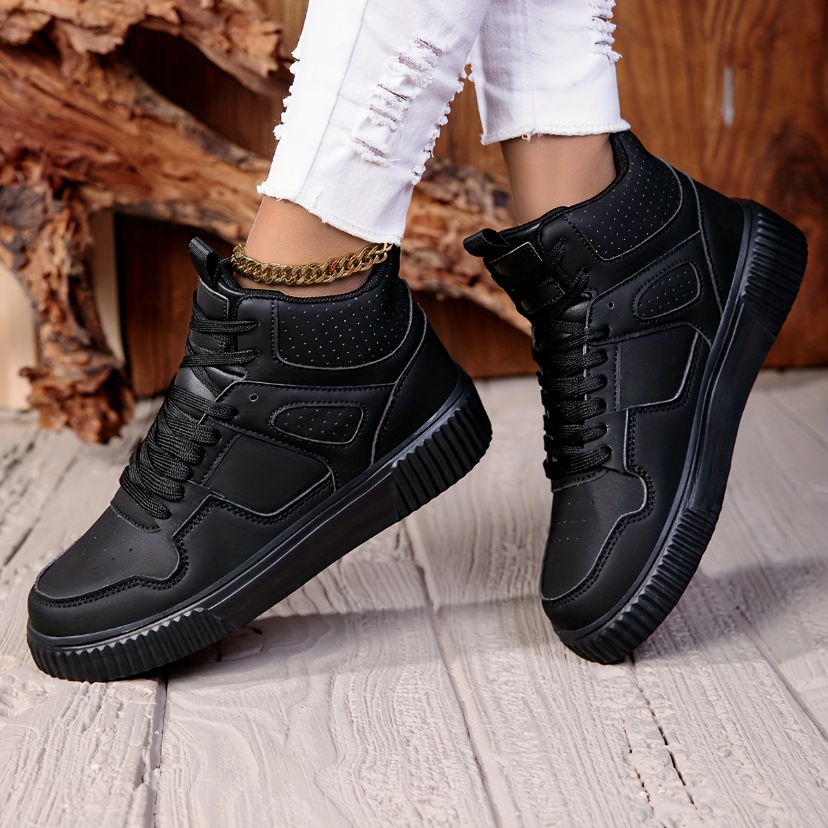 [Black High-Top Sneakers] Black Synthetic Women's High-Top Casual Sneakers | EVA Sole & Breathable Fabric Lining | All-Season Comfort for Casual Attire