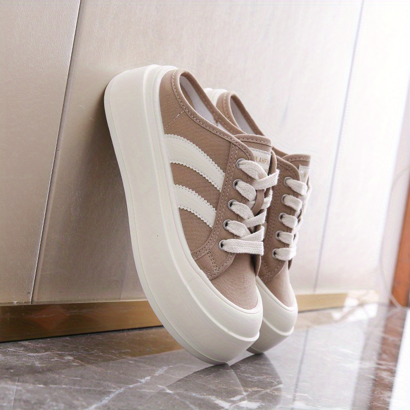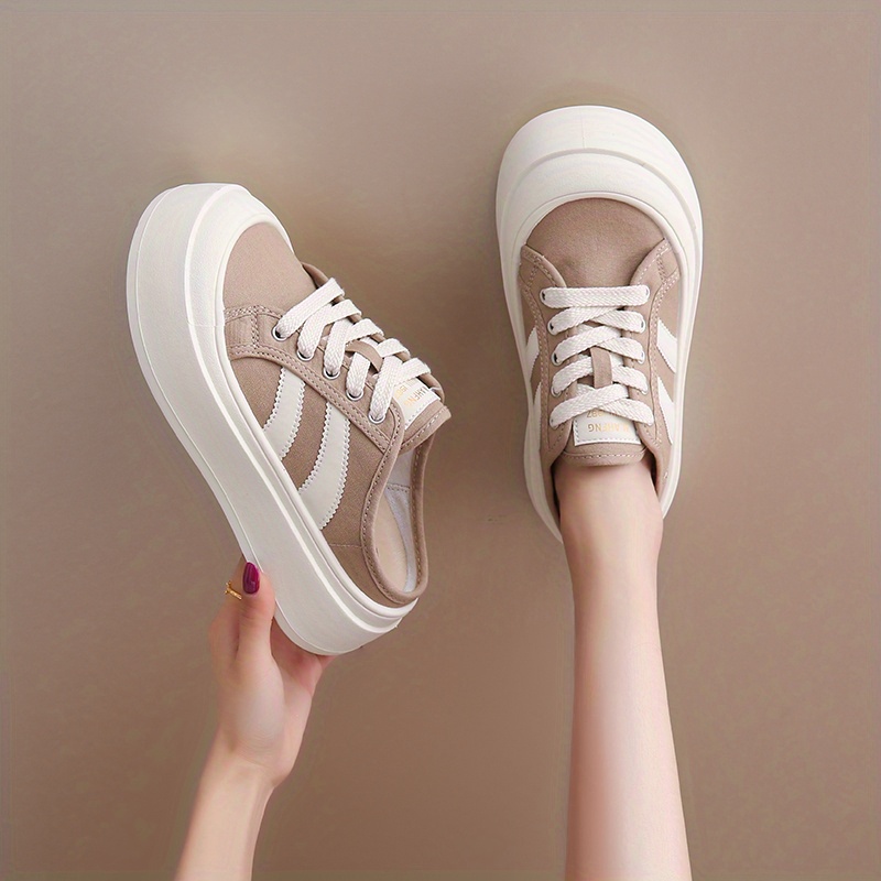 Beige Canvas Sneakers with White Laces - Round Toe, Rubber Sole, All-Season Comfort Shoes for Casual Attire, Casual Footwear | Round Toe Sneakers | Rubber Sole Shoes