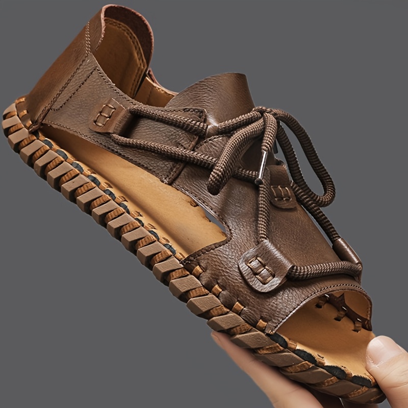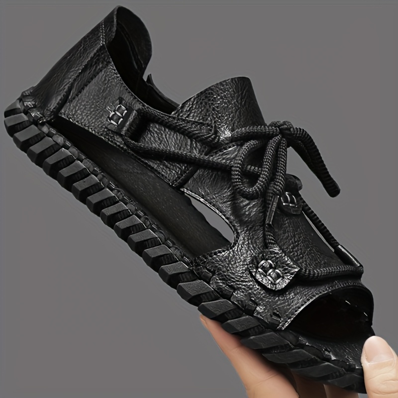 Men's Black Brown Grey Summer Sandals - Slip-On Casual Streetwear Flip Flops with Adjustable Straps, Super Fiber Synthetic & Rubber Sole for Vacation, Daily Wear