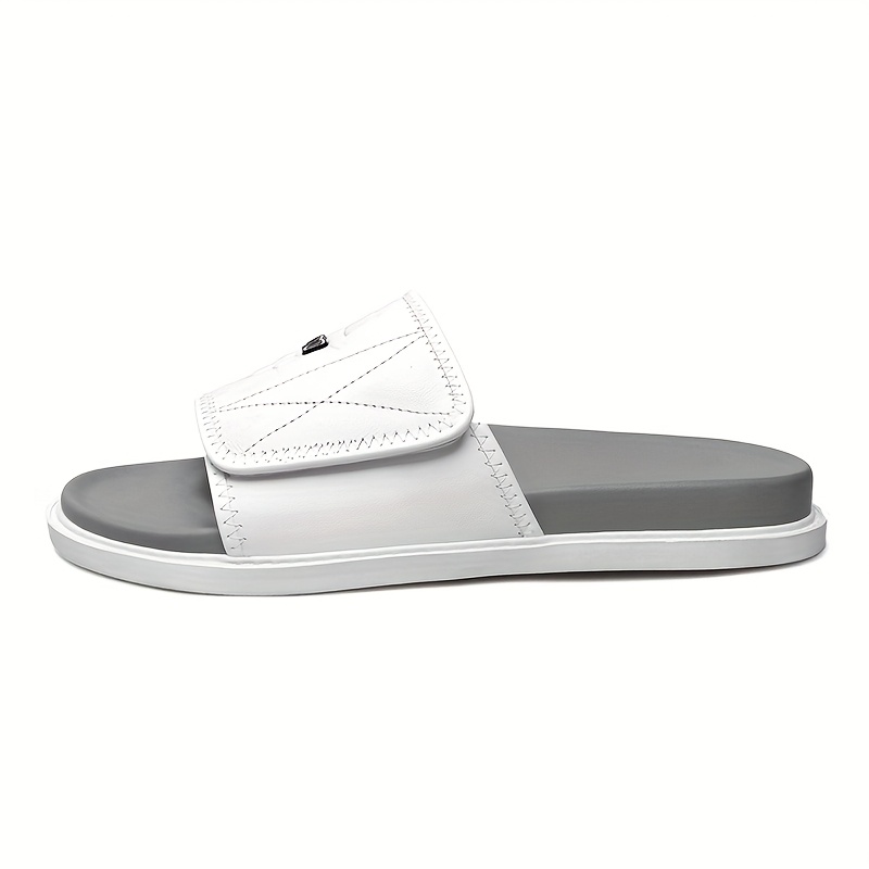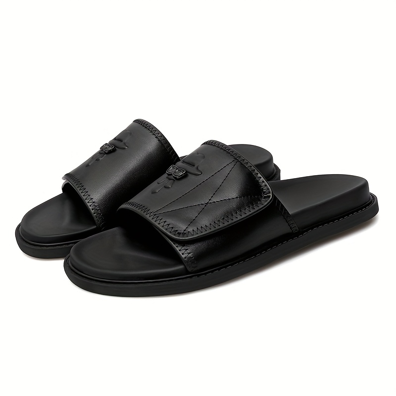 Men'S Fashion Slide Sandals - Summer Beach Shoes with Adjustable Hook & Loop Closure, Soft Faux Upper & Non-Slip Rubber Sole, Comfortable Casual Outdoor Streetwear for Vacation, Beach, Daily Wear, Beach Footwear, Vacation Style, Durable Traction Footwear
