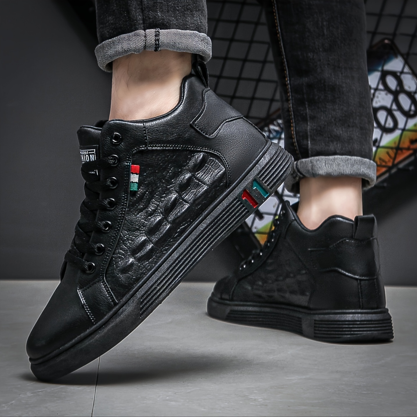 Men'S Non-Slip Durable Fashion Sneakers - Casual Street Style, Solid Color, All-Season Lace-Up Shoes with Thick Sole for Height Increase, Round Toe, Mid-Top Design, Faux Upper, Fabric Inner & Insole, PVC Sole