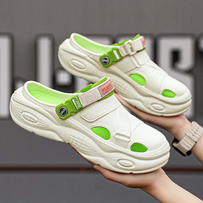 Men's Summer Slip-On Sandals with EVA Sole - Comfortable Beach Shoes for Driving & Casual Wear, White with Green Accents, Breathable Design, Easy On/Off, Durable & Stylish, Summer Sandals