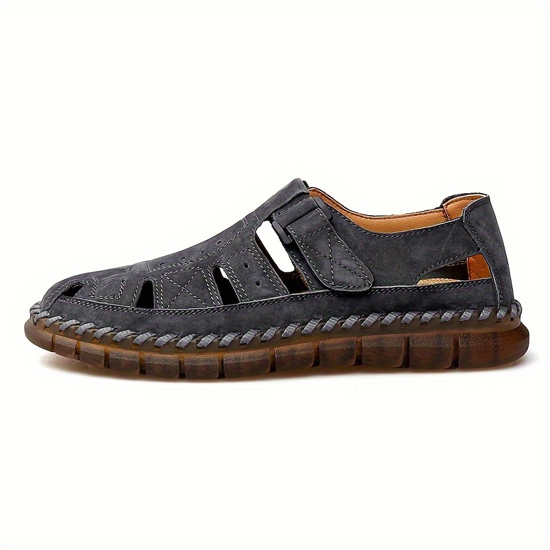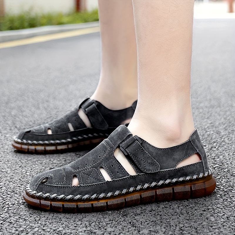 Men's Vintage Solid Colour Close Toe Sandals, Comfy Non Slip Durable Rubber Sole Beach Water Shoes, Men's Footwear, Summer