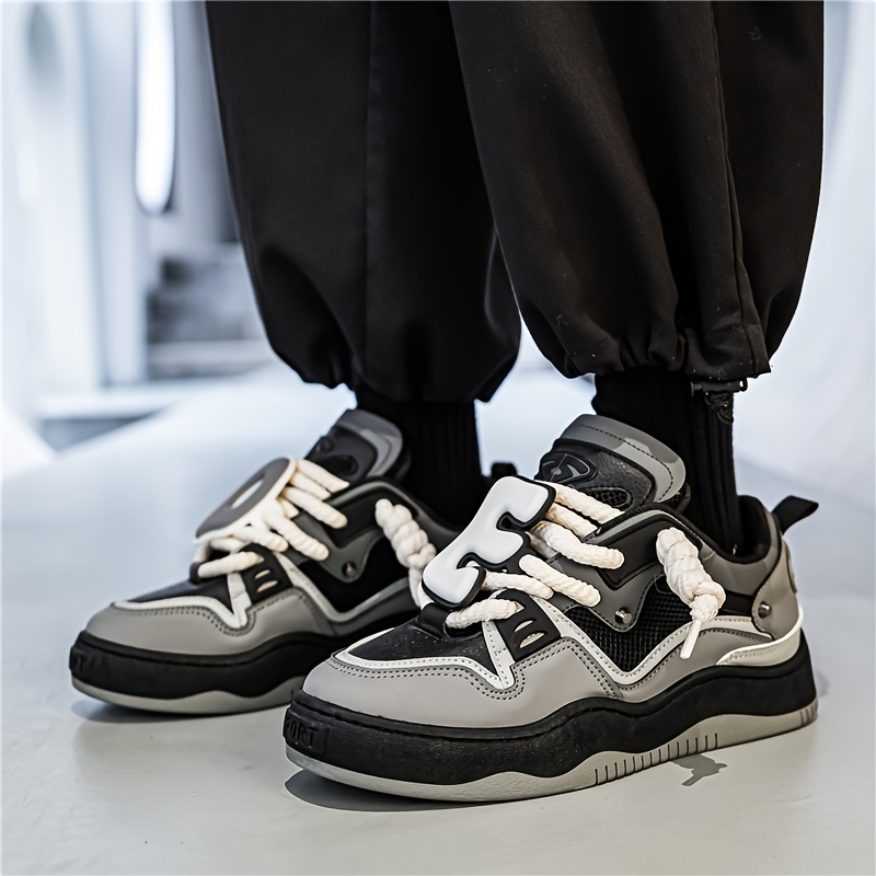 Out of the Box Trend! Large Letter Decorative Rope Shoelaces Street Fashion Men's Shoes Thick Sole Height-Boosting Sneakers for Boys