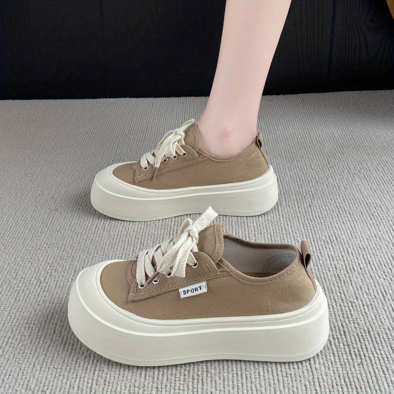 Women'S Casual Canvas Sneakers - Versatile Thick Sole, Round Toe, Lace-Up Design, Brown, All-Season Comfort Shoes, Comfortable Walking Shoes | Round Toe Sneakers | Durable Rubber Sole