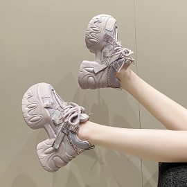 Women'S Chunky Platform Sneakers - Lace-Up High-Top Shoes with Non-Slip Rubber Sole, All-Season Casual Shoes for Everyday & Formal Outfits - Durable Canvas Upper & Cushioned Insole - Easy-Clean White Shoes for Women, Ladies Sneakers, Versatile Footwear, Trendy Footwear, Comfortable Fit, Fashionconscious Buyers, Streetwear Style, Breathable Fabric, Fashionconscious Women, Shoe For Women, Sneaker For Women