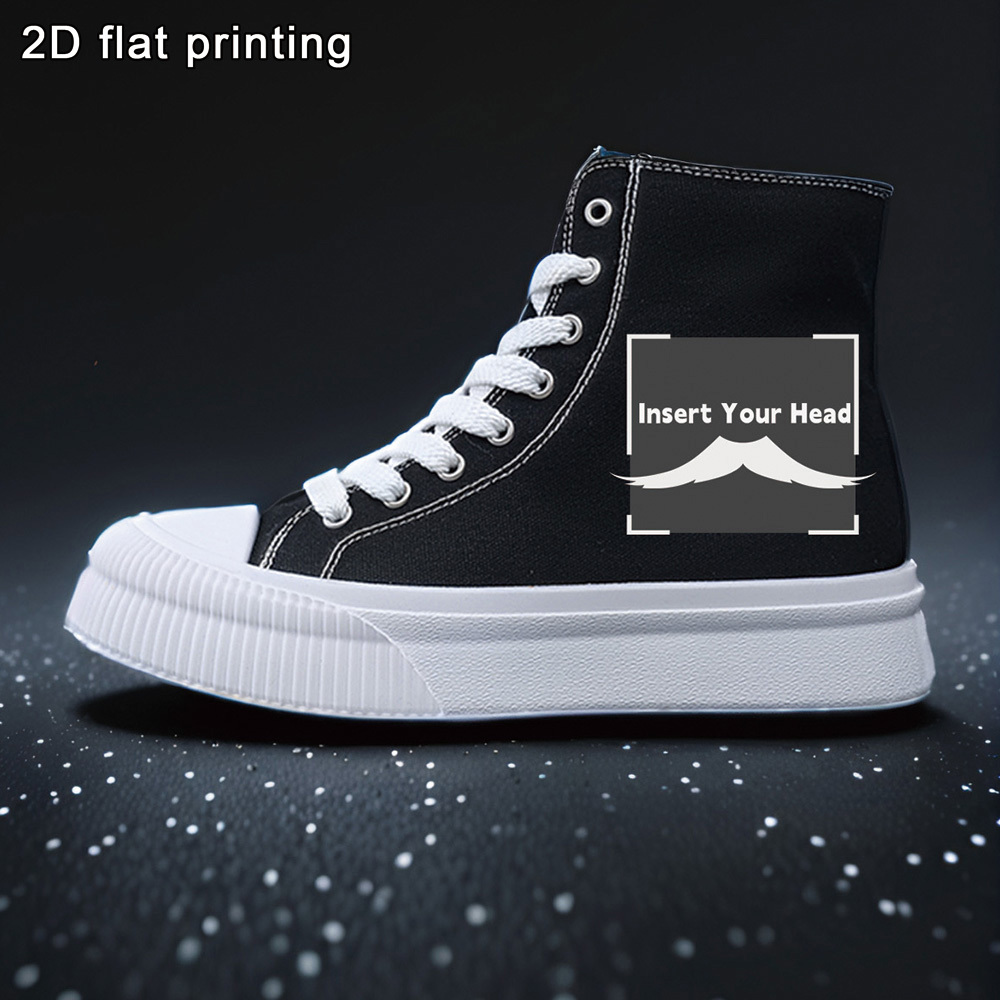 Women's Shoes Black and White Casual Skateboard Sneakers with Laces 2D Print Series, Campus Style for All Seasons