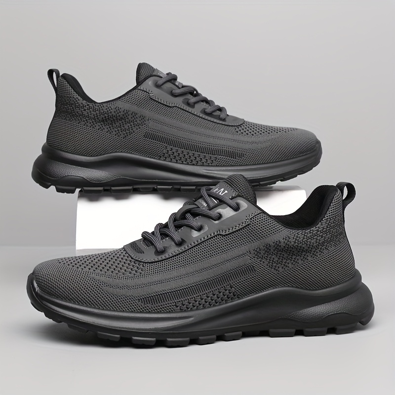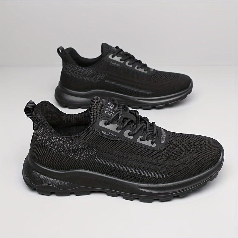 Men'S Low-Top Running Shoes - Breathable Mesh & Synthetic Synthetic Upper, Cushioned Sole for Shock Absorption, Lightweight Design for Gym, Jogging & Casual Wear - Black, Sneakers, Gym Footwear, Sleek Sporty Look, Cushioned Support