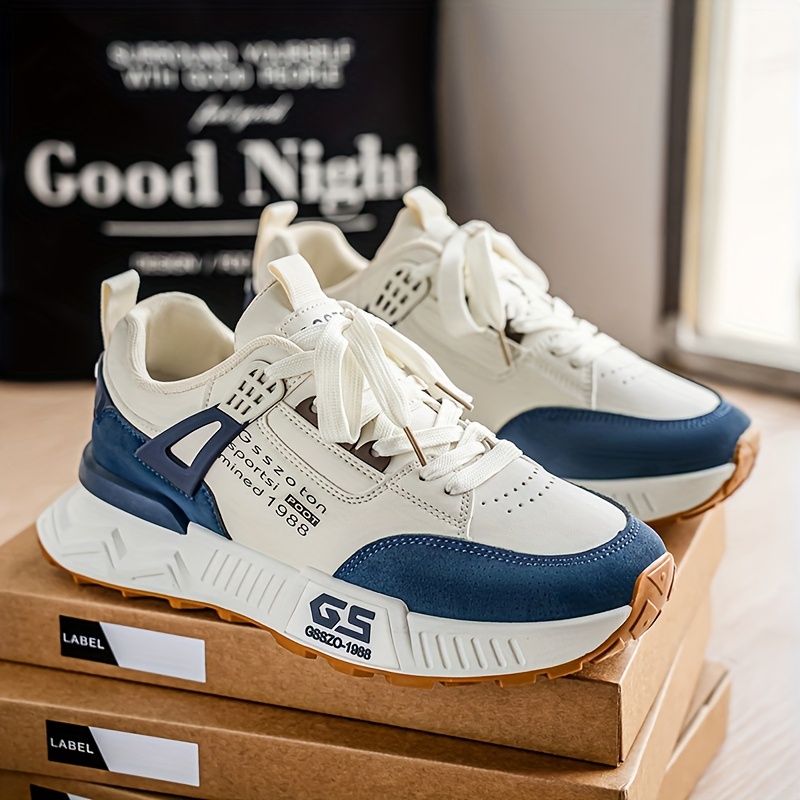Men's Non-Slip Sneakers - Slip-Resistant Cushioned Platform, All-Terrain Traction for Gym, Running, Casual - Low-Top Sneakers Black/Gray/ - PU Upper & PVC Sole - Lace-Up Athletic Footwear, Outdoor Activities, Streetwear Style, Breathable Lining, Versatile Kicks, Fitness Enthusiasts