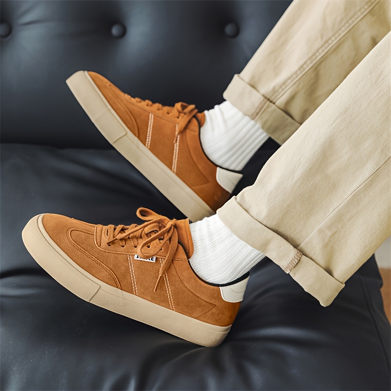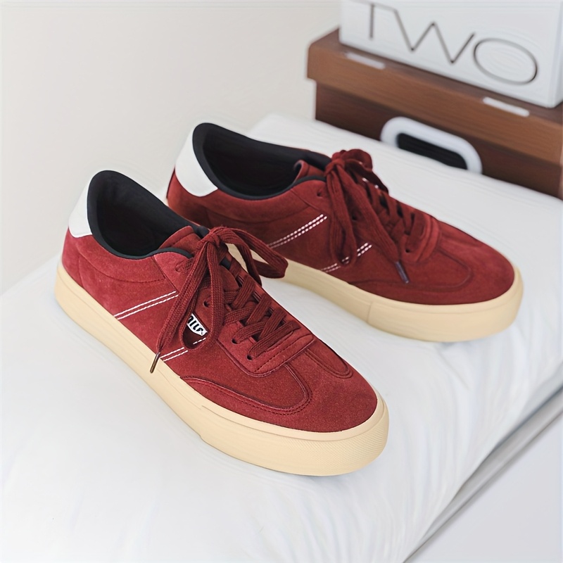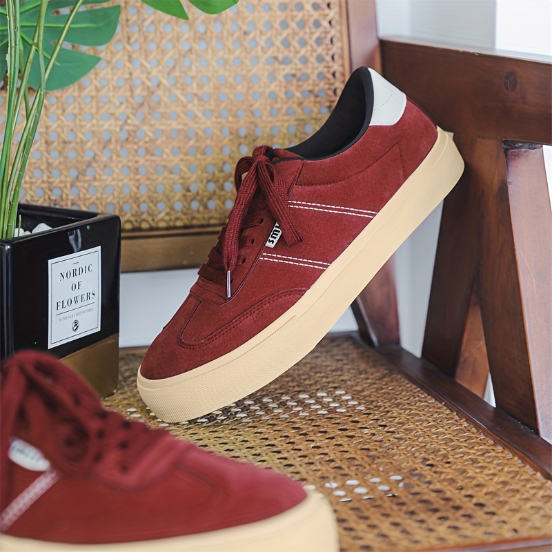 Men's Burgundy Low-Top Dopamine Shoes - Lace-Up Sneakers with Glossy Burgundy & Golden-Tan Trim, EVA Cushioned Arch, Solid Color Casual & Light Training Shoes for Spring/Fall, Skate Shoes, Gym, Semi-Formal - Minimalist Design, Durable -like Texture (No Laces Required) - Men's Fashion Sneakers with -like Upper & EVA Sole, Lace-Up Closure, Solid Color Casual Sneakers for Men, Shoes for Men Casual, Mens Sneakers High Quality, Canvas Shoes, Wide Shoes for Men, Mens Sneakers
